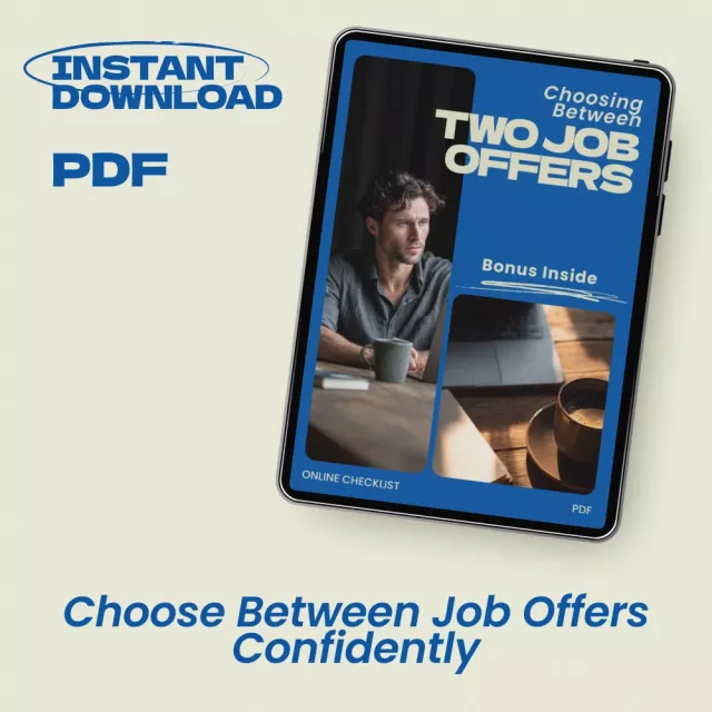 This simple yet powerful digital checklist helps you break down every important factor involved in how to choose between two job offers. Instead of relying on guesswork or pressure, you’ll evaluate each offer logically while still honoring your personal priorities and instincts.