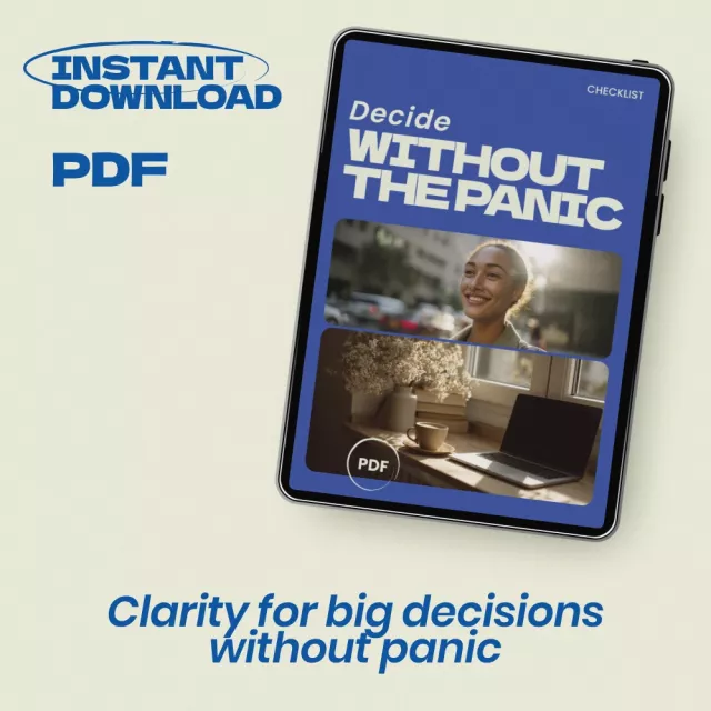 Big decisions can feel overwhelming—like standing at a crossroads with no clear direction. Decide Without the Panic is a thoughtfully designed checklist that helps you move through the fear of change when making big decisions with calm, structure, and confidence. Instead of getting stuck in overthinking or anxiety, this digital download gives you a clear, step-by-step path to organize your thoughts, understand your fears, and take meaningful action.