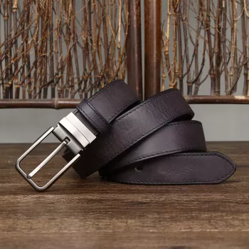 Men’s Genuine Leather Business Belt with Pin Buckle – Retro Style, 3.3cm Wide