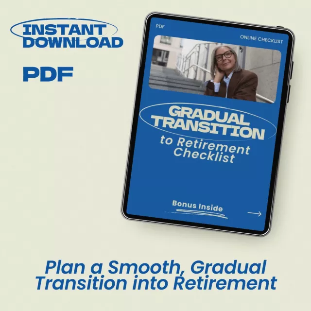 Retirement does not have to happen all at once. Many people today prefer a smoother path that allows them to maintain financial stability, personal purpose, and lifestyle balance while gradually stepping away from full-time work. The Gradual Transition to Retirement Checklist is designed to help you navigate this life change thoughtfully and intentionally. Instead of feeling overwhelmed by decisions, this practical digital checklist guides you through the most important steps so you can move forward with clarity and confidence.