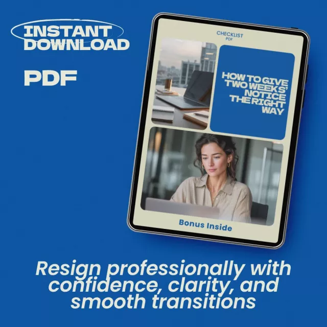 Ready to move on but unsure how to handle your resignation the right way? This How to Give Two Weeks’ Notice the Right Way checklist is your step-by-step guide to exiting your job smoothly while protecting your reputation and future opportunities. Designed for professionals who want to leave on good terms, this easy-to-follow digital download takes the stress and guesswork out of resigning—so you can focus on your next chapter with confidence.
