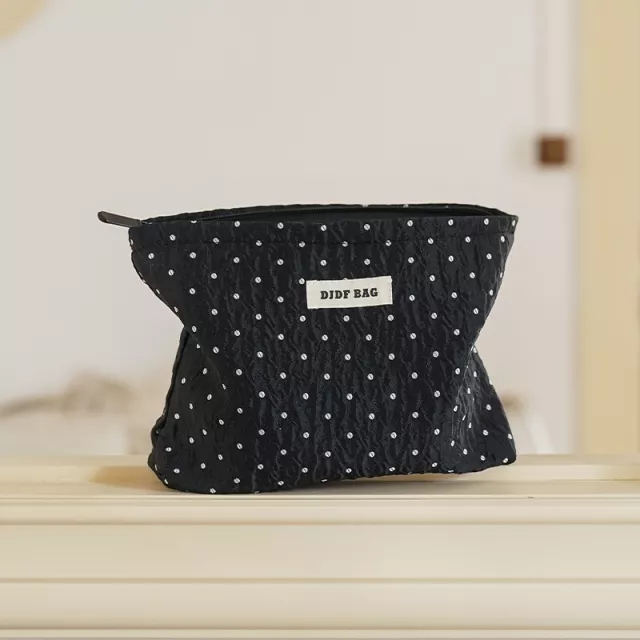 Elevate your beauty routine with this stylish black background makeup bag decorated with playful white dots. Designed for modern women on the go, it blends fashion with functionality. Whether you’re heading to work, traveling, or enjoying a weekend getaway, this versatile bag keeps your essentials organized and close at hand.